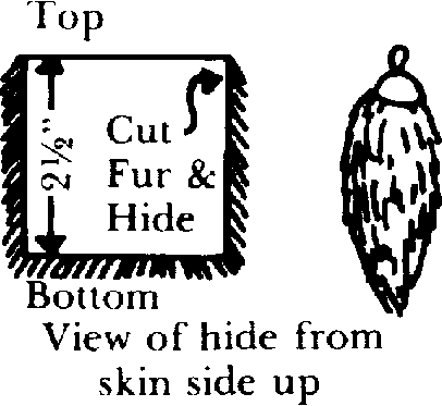 15. The.0125 excess in length hangs from the bottom to create the illusion of a tail which you can help by gently molding the "excess" pelt with your fingers (Fig. 61).