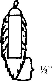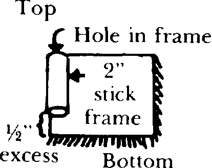 1. Roll a piece of heavy paper (this will serve as your pattern) around the.05 stick frame. Make a 1 cm hole in one end of the frame with it.a.05 nail, where you will later insert the - copper wire hook (Fig. 49).