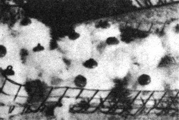Stretch the skins on a V-shaped, 1.50 m long piece of No. 9 galvanized iron wire covered with plastic to prevent rusting. The fur should be inside and the flesh facing out. When this is done, apply coconut or olive oil thinly and evenly on the skins (see oiling formula below)(Fig. 39). If either olive or coconut oil is not available, use 100 cc of any type that is procurable and will not turn rancid. If only one of the recommended is available, use 100 cc for the oiling process, To dry, hang the skins in the shaded place not under the direct sunlight (Fig. 40).