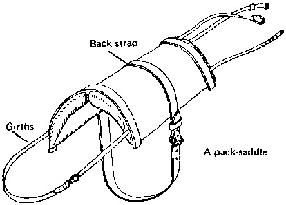 The pack- saddle is used for carrying loads in places where a cart cannot go.