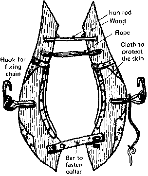 In order not to injure the animal put a pad of straw or kapok wrapped in cloth between the yoke and the head.