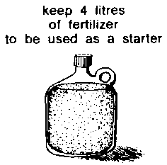 103. After all the gas has been made, take the unit apart and empty out the fertilizer. Keep about 4 litres of the fertilizer to be used as a starter for the next time.