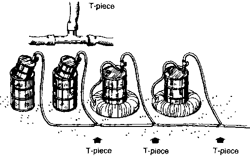 138. The drawings below show you how to connect several units to the same gas line with T- Pieces.