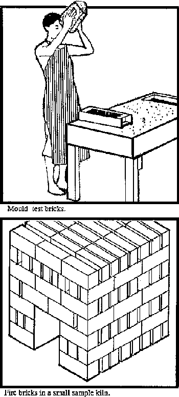 (See the section on Problem Bricks) If you are satisfied with the results, continue to use the same clay on a slightly larger experimental scale and produce enough bricks for a 1,000 brick kiln. Fire this kiln and once more note the results.
