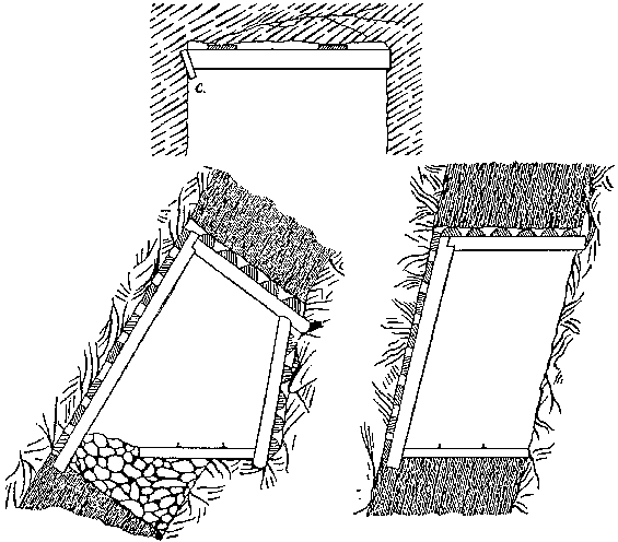 Frame-set supports are additionally braced by wedging struts between the props of adjacent sets to increase their stability. The spacing between sets ranges from a few centimeters up to 1,5 m depending on the compressive load. In Inclined formations, frame supports are installed with the props perpendicular to the stratification (dip).