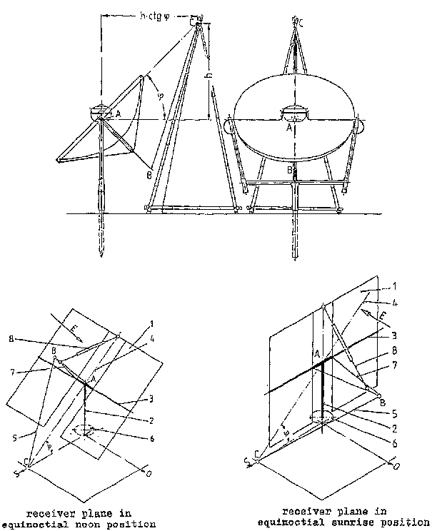 Appropriately, the VIAX mechanism is installed behind the reflector. The journal "Sonnenenergie" 10, 3, 1985 includes a detailed description. For checking and testing the food, the SK 10 parabolic mirror can easily be turned away without moving the cooling vessel in the pot holder. Consequently, there is no danger of dazzling, blinding, or burning. The rest and night position of the reflector is upside down for dust protection. Several VIAX cookers have been tested so far.