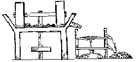 finer than 40-60 mesh is returned to the pan mill.