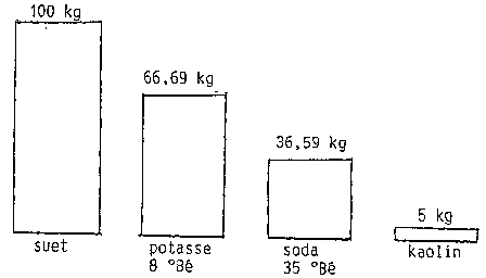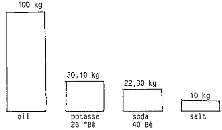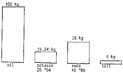 Traditionally the saponification of pourghere oil is carried out with a potassium alkaline solution extracted from plant ashes.