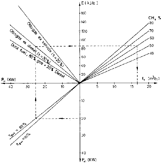 Further to the exploitation of all possibilities to raise biogas production the power demand which cannot be satisfied by biogas will have to be satisfied through other fuels such as diesel, petrol, LPG or alcohol. Here the dueal fuel diesel gas engine offers a specific advantage as it can operate not only at fluctuating rates of biogas but also at a comparatively high efficiency in part load operation. This makes the diesel gas engine an ideal choice for uneven power demand profiles in cases of insufficient biogas supply. The power class of the engine to be chosen depends on the demand of the largest single consumer or the sum of the consumers operating simultaneously.