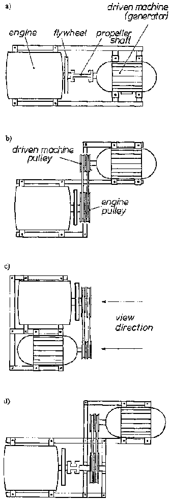 The generator efficiency is specified by the manufacturer and usually ranges at hg = 0.82 . . .0.92. In case of belt transmission, the transmission efficiency needs to be considered also in a way that the total power demand of engine cum transmission required from the engine Peng, a is: