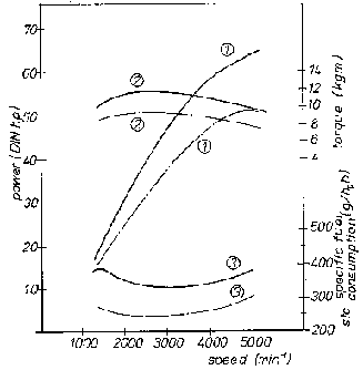 - Petrol: previous petrol carburetor retained or remounted. Maximum compression ratio e = 9.5 for premium, e = 7.5 for regular.