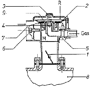 1 butterfly throttle valve, 2 diaphragm, 3 spring, 4 gas
