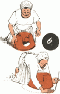 Baadaye chora mviringo kuzunguka ule mjengo ukitumia kijiti au kidole. Halafu weka viganja vya mkono sakafunitena, karibu sana na msitari uliochora, ili uweke alama nyengine. Halafu ondoa mjengo wa jiko la mabati.