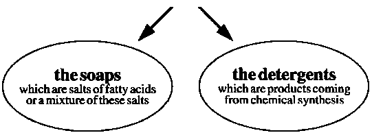 Detergents are technologically more sophisticated products designed for more specific use. As they are insensitive to the hardness of the water - which, conversely, precipitates soap - detergents have their main outlets in mechanical washing (washing machines and dish-washers) and industrial washing. These products will not be covered by this technological inventory.