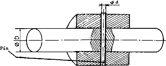 Pinning, known as pegging or dowelling in woodworking, allows rigid but dismountable joints to be made. Pinning is a form of joining as it consists of placing a pin or peg in a Pin, cylindrical hole drilled through the two parts to be assembled, which are joined together as shown in figure VII.6. The pin may be of horn, hardwood or metal. The nominal diameter "d" of the pin depends on the nominal diameter "D" of the male part.