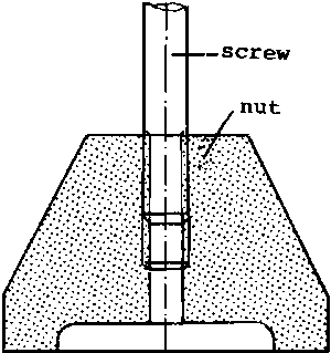 When the nut component is thicker, it need not be threaded through, but only to a depth sufficient to accommodate the screw. As it is difficult to thread to a precise depth, it is preferable to thread the nut component to a depth slightly greater than the length of the screw. Before threading the nut component is, in any case, drilled through (figure VII.10).
