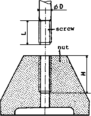 Figure VII.13, which shows the parts before they are mounted, indicates the recommended depths of drilling and threading according to the screw diameter.