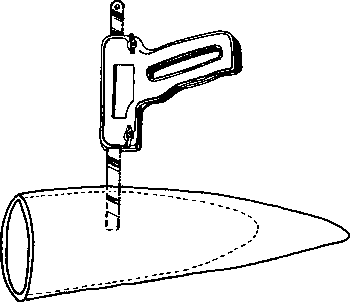 The pistol-grip handsaw shown in figure II.2 is indicated for longitudinal cutting of the horn from any angle. In addition, this type of saw is very economical as broken hacksaw blades can be used.