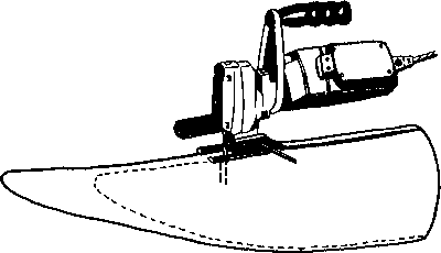 A jigsaw, as shown in figure II.3, may be used for straight cuts through the widest part of the horn, where the internal diameter is large enough for the blade to reach its lowest point without coming into contact with the opposite side of the horn.