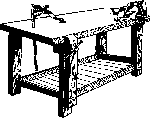 A wooden workbench is suitable for working horn. It should be equipped with a wooden vice, a fitter's vice and a bench clamp. The wooden vice is used for holding untreated horns. The fitter's steel vice has parallel jaws and is used for holding pieces of horn while they are being worked. The clamp is used to secure untreated or flattened horns firmly to the bench. It should have an eccentric grip to avoid splintering the horn.