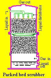 Gas cleaning and cooling for gasifier system is accomplished by a cyclone, a gas cooler with some scrubbing action and a packed bed filter. Gas cooling increases density of gas in order to maximize the amount of gas entering the engine cylinder. Wet scrubbers are used to remove gaseous pollutants and solid particles while cooling the gas at same time. There exists different kinds of scrubbers for small scale producer engine system. A Packing bed scrubber consists of packing, liquid, support grates and distributors plates. Packing can be made from wide range of commercial and home made materials-steel, wool, wood chips, coke, gravel etc. Gas is passed through bottom and removed at top. |