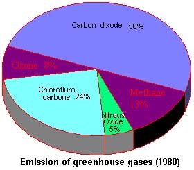 Great environmental concern is expressed over the release of CO 2 from the burning of fossil fuels. When fossil fuels are burnt, carbon from fuels react with oxygen from air and produce CO 2 . This is the reason for steady increasing CO 2 content of atmosphere. Carbon dioxide contributes to 50% of green house effect.