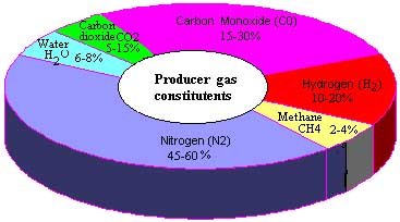 Introduced air in the oxidation zone contains, besides oxygen and water vapours, inert gases such as nitrogen and argon. These inert gases are considered to be non-reactive with fuel constituents. The oxidation takes place at the temperature of 700-2000o c.