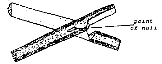 With a drill, make a hole through both pieces. Put a nail through these two holes. Bend the pointed end of the nail. '[our tongs are now completed.