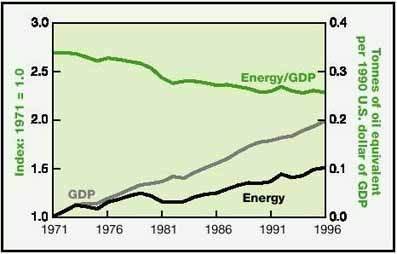 However, the amount of additional energy required to provide the energy services needed in the future will depend on the efficiencies with which the energy is produced, delivered, and used. Energy efficiency improvements could help reduce financial investments in new energy supply systems, as they have over the past 200 years. The degree of interdependence between economic activity and energy use is neither static nor uniform across regions. Energy intensity (the ratio of energy demand to GDP) often depends on a country's stage of development. In OECD countries, which enjoy abundant energy services, growth in energy demand is less tightly linked to economic productivity than it was in the past (figure 3).