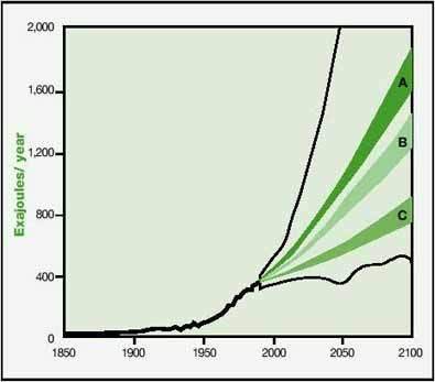 15. Both figures include the 2 billion currently without access to commercial energy. UN population projections were revised downwards in 1998, after the scenarios described here were developed. Although the population assumption used for the scenarios described here (11.7 billion by 2100) is slightly higher than the UN medium scenario (10.4 billion), the two are not inconsistent.