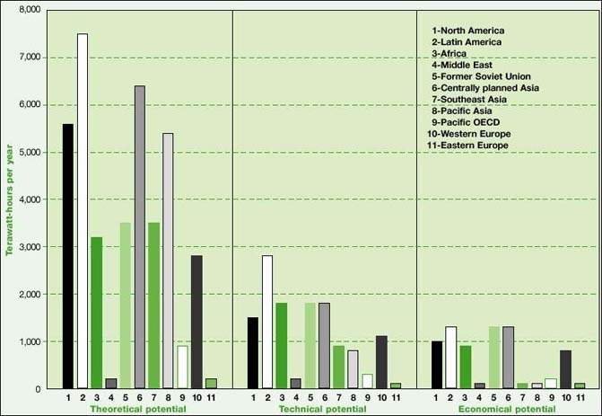 For renewable energy sources, the concepts of reserves, resources, and occurrences need to be modified. Renewables represent annual flows available, in principle, on an indefinite sustainable basis. Fossil energy reserves and resources, although expanding over time, are fundamentally finite quantities. In this context the annual natural flows of solar, wind, hydro, and geothermal energy and quantities grown by nature in the form of biomass (often referred to as theoretical potentials) would correspond to occurrences. The concept of technical potentials can be used as a proxy for energy resources, while economic potentials correspond to reserves. The distinction between theoretical and technical potentials reflects the degree of use determined by thermodynamic or technological limitations without consideration of practical feasibility or costs. Thus the economic potential is the portion of the technical potential that could be used cost-effectively. In terms of reserves, resources, and occurrences of hydrocarbons, economic and technical potentials are dynamically moving targets in response to market conditions and technology availability and performance.