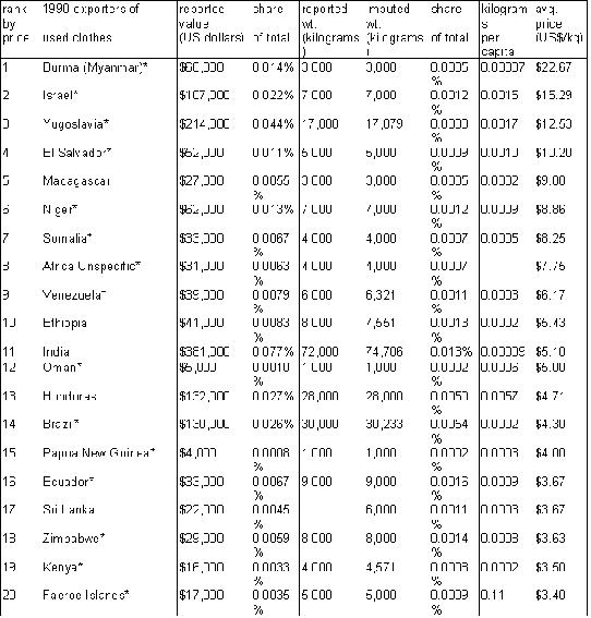 This is not to say that Swedish NGO projects with such overseas counterpart organizations may not be quite useful and even worthy of Sida support, but it does call into question the appropriateness specifically of Sida subsidies for used-clothes exports as part of such projects, since one of the main justifications for such subsidized exports is usually that they are reaching the poorest of the poor. Given the relative status of the probable targets of most such projects, used clothes, while certainly of value and probably salable on the market, are probably not really what they need most. And, if the clothes are going to end up on the market anyway, such subsidies are not generally necessary, given functioning domestic used-clothes markets in LDCs as we have seen.