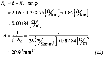 Fig 4 is a tool to estimate the cross section A. Anexact determination includes the line length. The graph is based on formula (4):