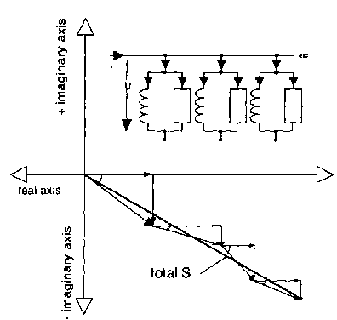 A simple way to display this behaviour is the phasor diagram. We draw (see Fig 24) two ortogonal axes. The horizontal is the real axis and the scale for real values (or active components like resistors). The vertical axis is the scale for imaginary values (or purely reactive components like inductances). A phasor is a vector ('arrow') drawn in this plain representing a quantity like an electrical current, voltage or power. The length (in units of the scale) indicates the strength, the direction (in degrees clockwise from the real axis) indicates the phase of this quantity.