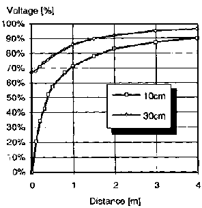 If the earth contact reaches the surface, the contact voltage is very low, but the distribution is steep and consequently the step voltage high. Digging in the earth contact deeply smooths the distribution, lowers the step voltage, but increases the contact voltage.