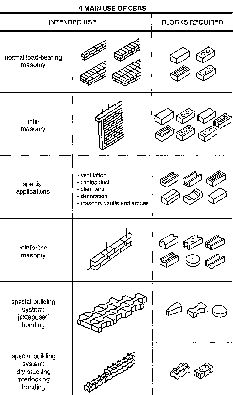 Whilst meeting the same requirements as other present-day building materials, the CEB also presents a technological alternative to imported materials, the use of which is often justified because of the need for standardisation. CEBs have the advantage of being produced locally, whilst still meeting this need.
