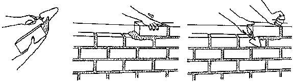 For stabilized compressed earth blocks, blocks should be pre-soaked, and the surface on which they are to be placed should also be moistened. The block should be "spread" with the right quantities of mortar on the sides to be bonded.