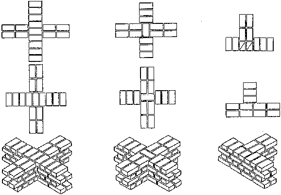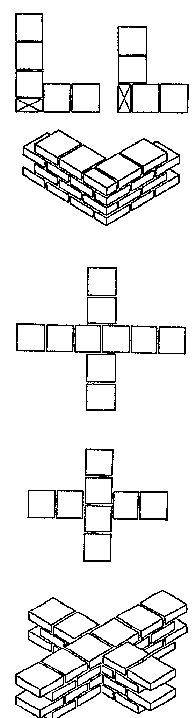 Fig. 56: "X" -shaped and bonding patterns using full blocks and "T"-shaped bonding patterns using three-quarter blocks.