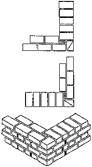 Fig. 58 a: Corner bonded using headers and stretchers without three-quarter blocks.