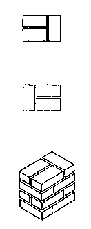 A few examples of bonding patterns for walls the width of which is equal to a half-block. These bonding patterns use full' half and three-quarter blocks.