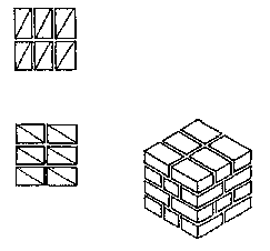 Fig. 53: "X"-shaped and "T"-shaped bonding patterns using three-quarter blocks.