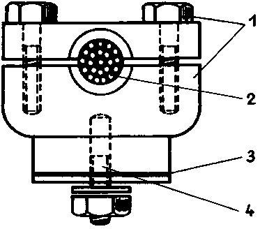 1 insulator, 2 tie, 3 s-shaped clamps, 4 wrapped stranded conductor