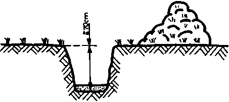 Underground cables are laid in cable ditches. Depending on the properties of the soil and the degree of danger to damaging the cables these cable ditches are from 70 to 120 cm deep. The base of the cable ditch must be so wide as to offer sufficient space for the cables to be laid. The distance between cables is to be approx. 20 cm. In order to prevent damage to the cables they are placed on sand, fine gravel or screened soil. The excavated soil stays beside the cable ditch. After completion of cable laying it will serve to back-fill the remaining ditch.