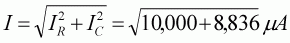 The total current I » 140 µA and the phase angle of j 45° are indicated by the lengths of the vectors.