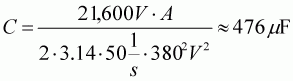 With a capacitor connected in parallel with the loads having a capacity of C 500 µF, the bad power factor of cos j = 0.5 can be increased to the ideal value of cos j = 1.