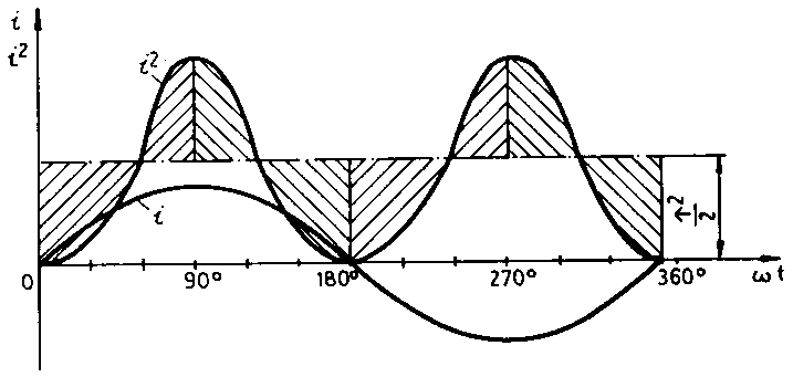 The magnitude of the alternating voltage or the alternating current can be determined on the basis of the sine curve developed in Fig. 7.2. The maximum value occurring at 90° and 270° is called peak value, maximum value or amplitude and is designated by Û (or Î). All other values which very continuously and, thus, are different at any time are called instantaneous values and are designated by u (or i).