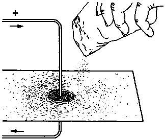 Field lines are employed to display graphically magnetic fields. Figure 1 shows a current-carrying conductor. Iron powder scattered at the level of this arrangement falls into concentric circles. This leads to a model presentation of field lines.
