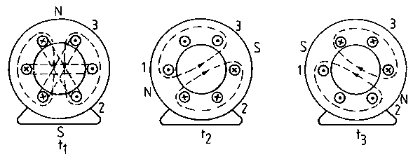 emergence of a rotating field, t1; t2; t3