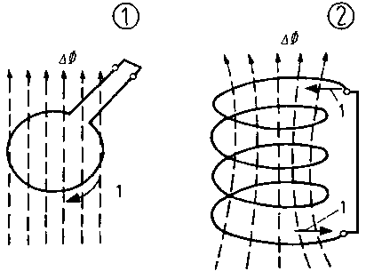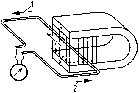 1 Induced current, 2 Direction of movement