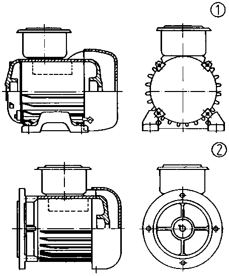 With flange shaft end on the D-side and cylindrical shaft end on the N-side